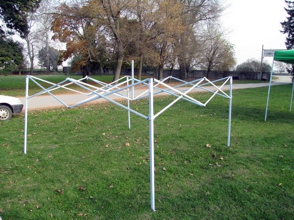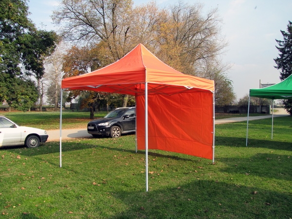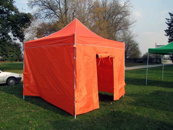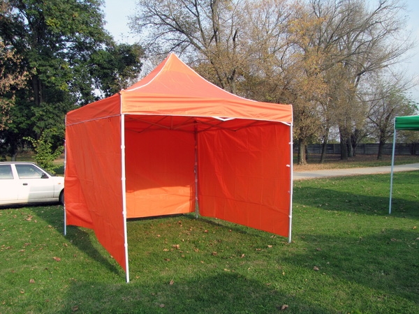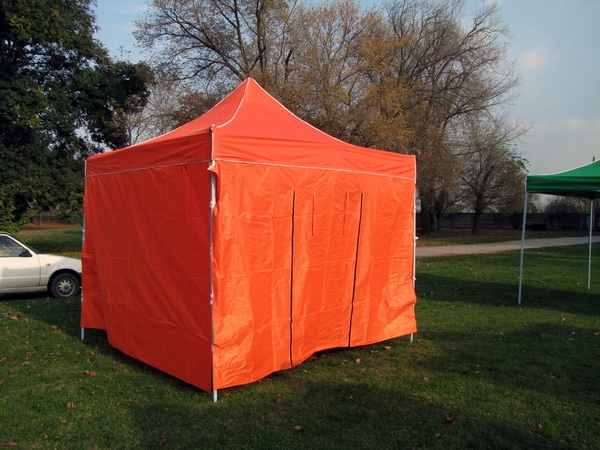 Je to také jednoduché! Konštrukciu stanu v zbalenom stave postavíme a postupne rozťahujeme do strán, samostatne každý roh. Potom založíme strešnú plachtu a upevníme ju pomocou suchých zipsov. Ďalej založíme stredovú tyč jednoduchým zasunutím do stredového profilu. Postupne vysúvame nohy stanu do požadovanej dĺžky (štyri polohy). V prípade veterného počasia, stan ešte poistíme fixnými lanami. Nakoniec pomocou suchých zipsov upevníme podľa potreby bočné steny. To všetko bez použitia nástrojov a v krátkom čase.